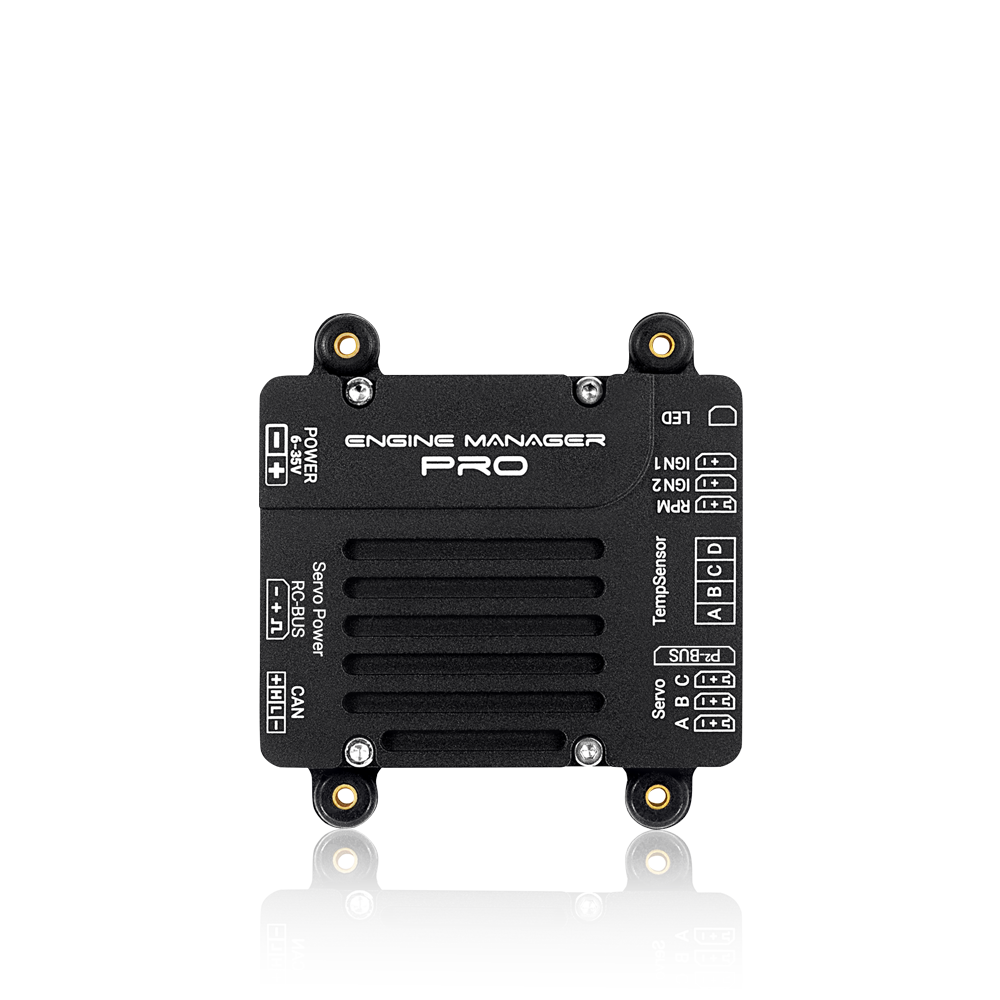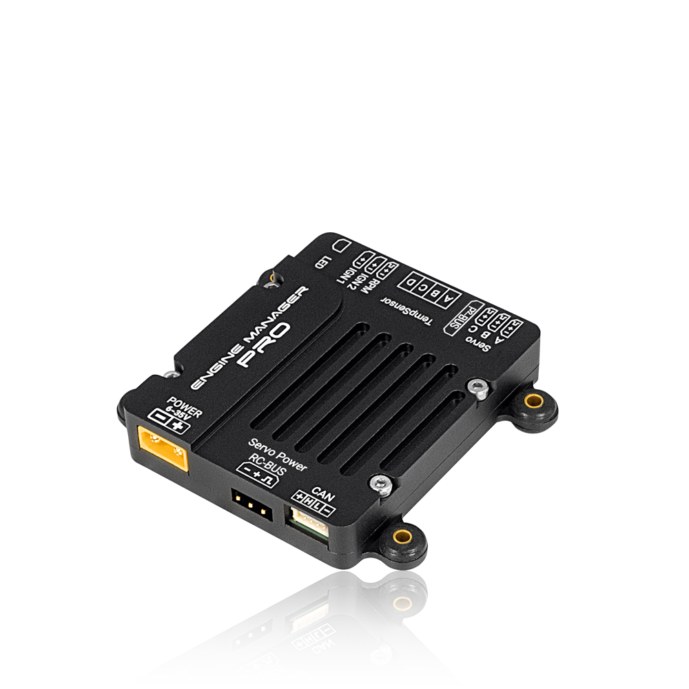 Der Engine Manager Pro übernimmt alle Aufgaben zur Steuerung und Überwachung eines Benzinmotors. Die Schaltung und Stromversorgung für bis zu zwei Zündungen gehören zu seinen primären Funktionen. Die Zündung kann mit bis zu 35V versorgt werden, während der Ausgang wahlweise auf 6,0V, 8,0V oder 12,0V eingestellt werden kann. Ein doppelter LC-Filter sowie ein Überspannungsschutz entkoppeln die Zündversorgung vollständig von der übrigen Bordelektronik.
